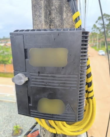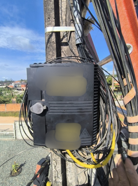 Executada organização, acomodação e padronização dos cabos na caixa de atendimento FTTH, garantindo melhor identificação e manutenção da rede.