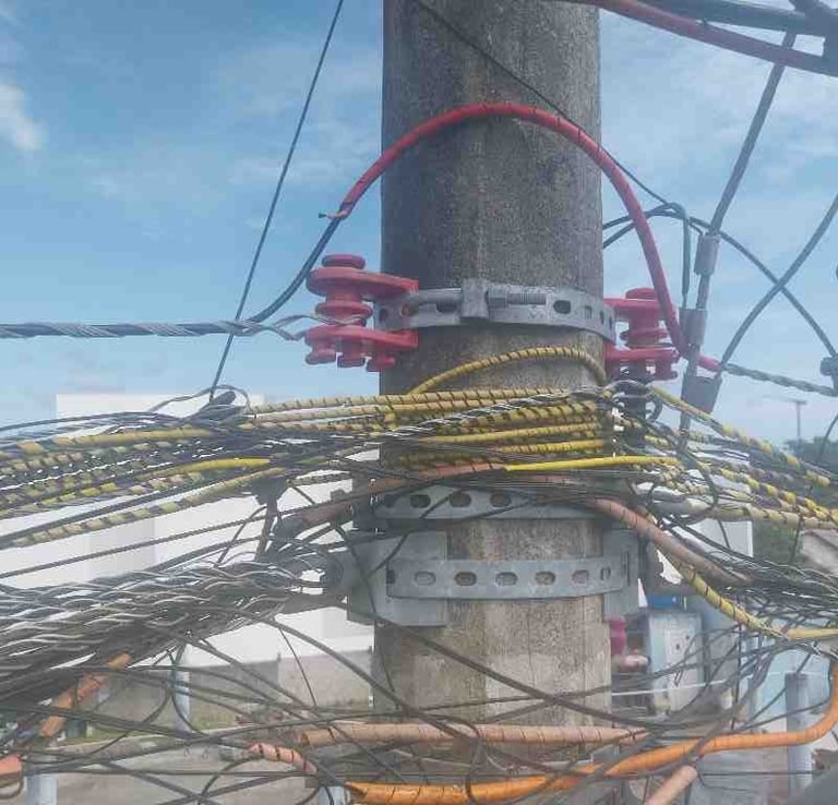 Realizado recuo e relançamento dos cabos, adequando a rede para abaixo da luminária pública, conforme exigência da CELESC.